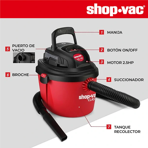 ASPIRADORA SOLIDOS/LIQUIDOS 5GL 2.5HP +ACCESORIOS SHOP VAC