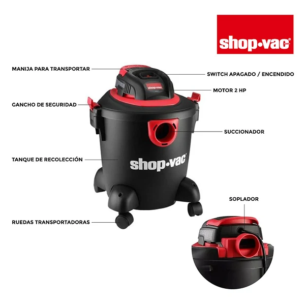 ASPIRADORA SOLIDOS/LIQUIDOS 5GL 2.5HP +ACCESORIOS SHOP VAC
